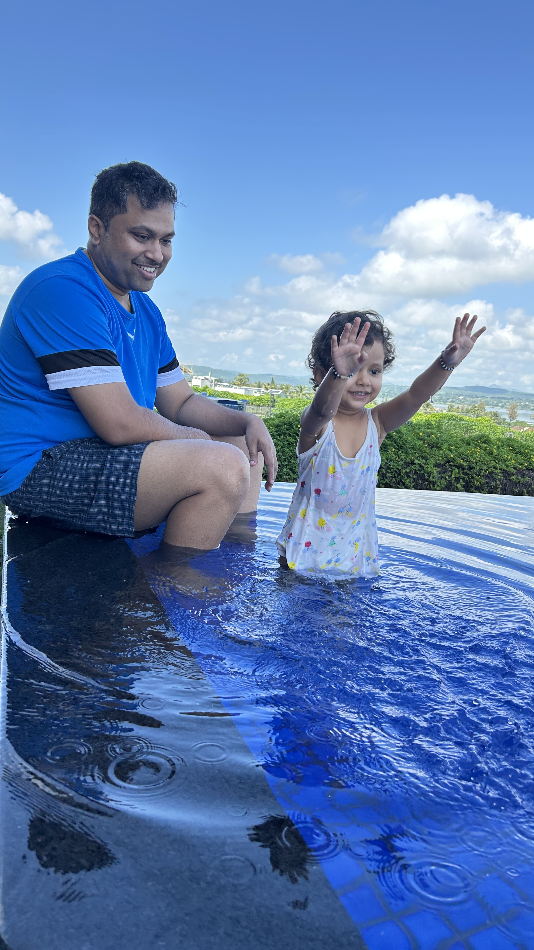 Well more than us it was the first time for my daughter. Her first dip into the water was very memorable. At first he was hesitant but later it became a task to get her out of the pool. We did not get floating tube or any other helping thing for her which was big mistake but she enjoyed a lot. As you can see she was standing on platform in the pool and playing in water for almost 30 mins. The cold breeze and sunlight didn’t affect her enthusiasm. We couldn’t actually believe that it was her first time into the pool, the confidence and playfulness was remarkable.